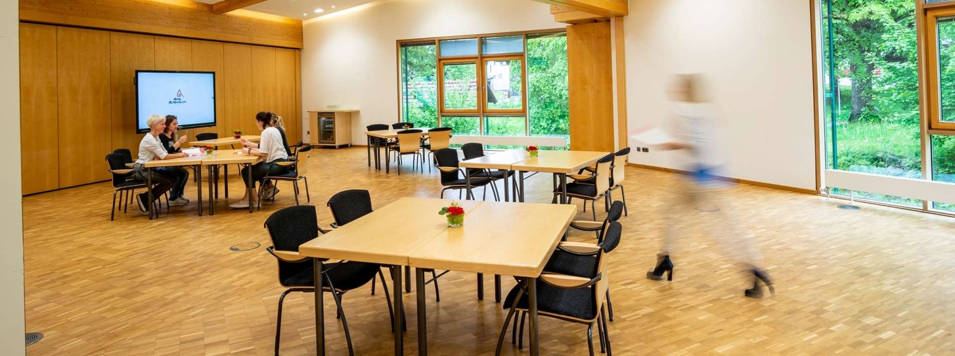 Es gibt die Möglichkeit, im Tagungshotel Alpenblick mittags und abends auf Selbstzahlerbasis zu essen.